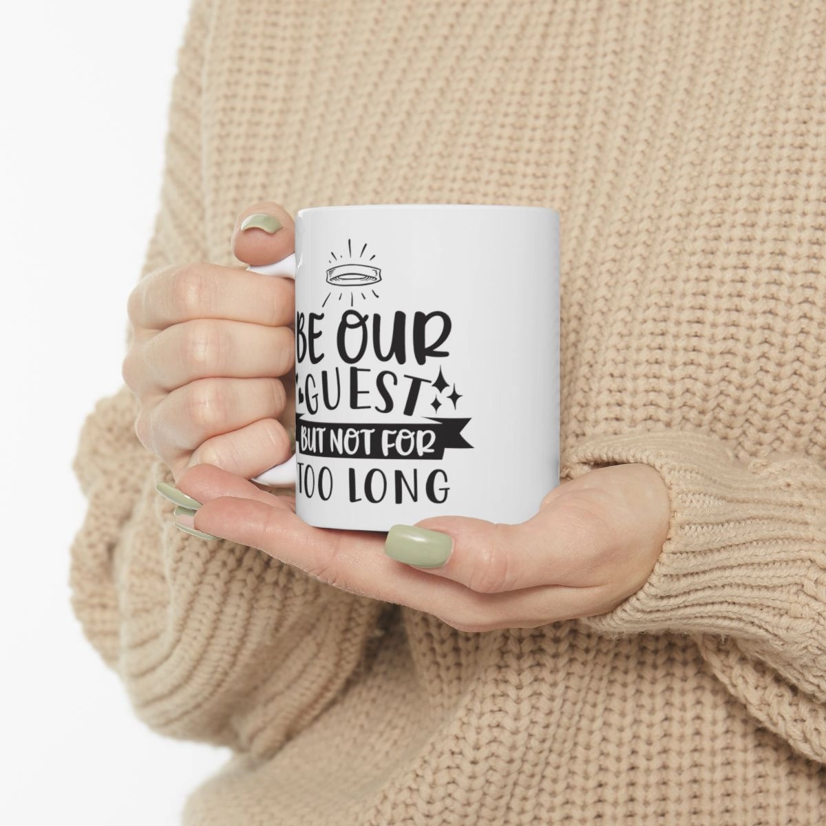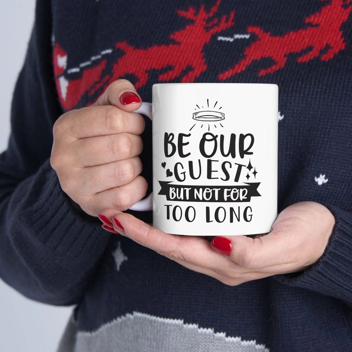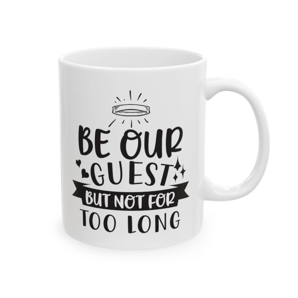 "Be Our Guest But Not For Too Long" - Funny Double Sided Print - White Ceramic Mug 11oz